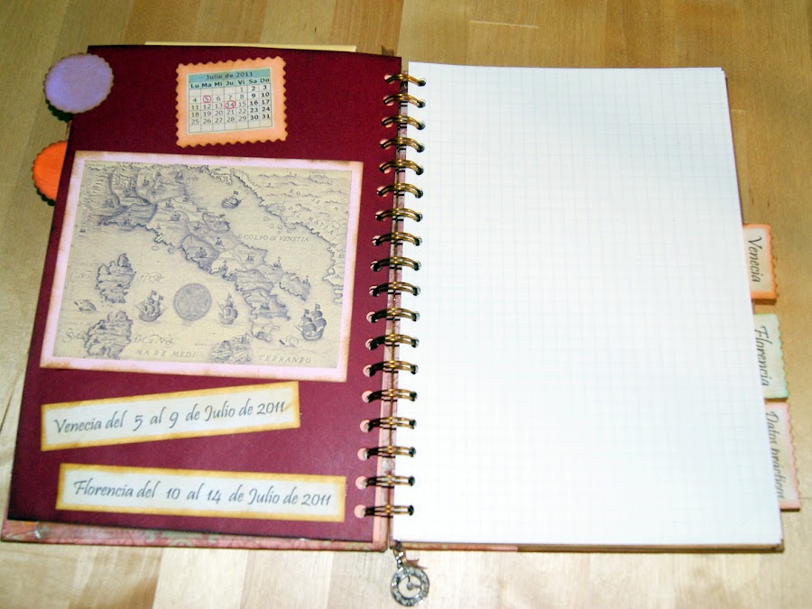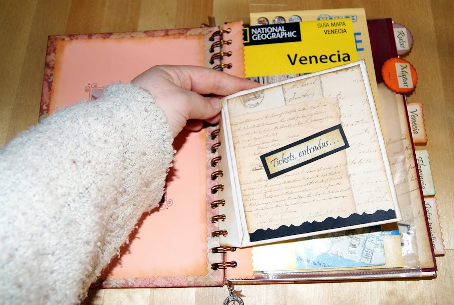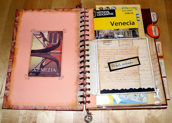 A partir de aquí comenzaré mi pequeño diario de los dias que estaremos en Venecia,en este separador hay también un bolsillo para meter cosas relacionadas con la visita,postales,entradas,folletos...