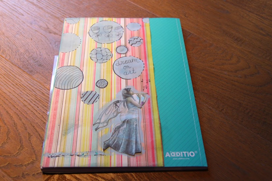 Con papeles, blonda y distress y algo de doodling e intento de coser a máquina -digo intento porque con este papel no pudo ser :(( éste es el resultado: