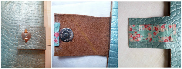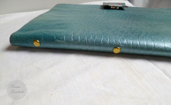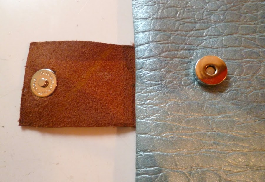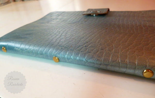 Tenía retazos de cuero, ya te había contado de ellos acá, en este caso uno súper fashion con textura croco celeste metalizado,poco natural pero lindísimo.