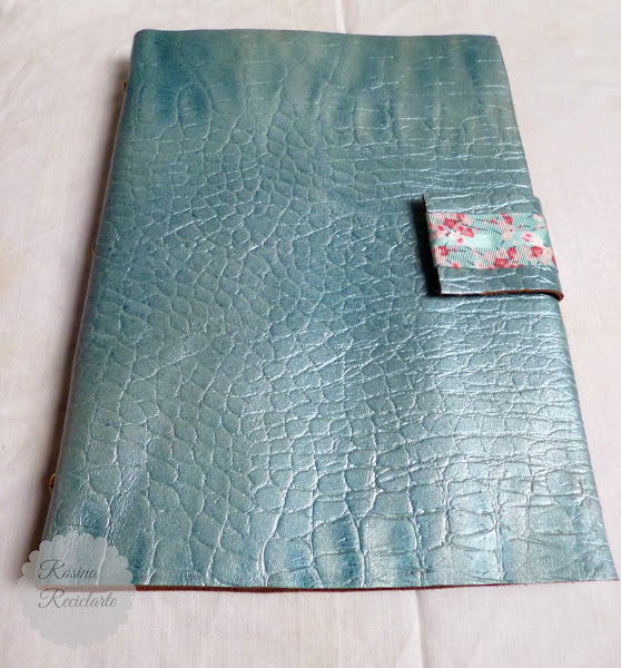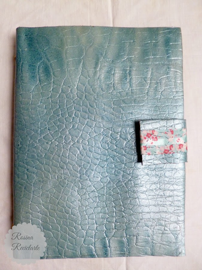 Ya tenía el cuaderno listo, pero el reverso del broche como que no quedaba muy lindo.Así que lo disimule con una cinta en composé.