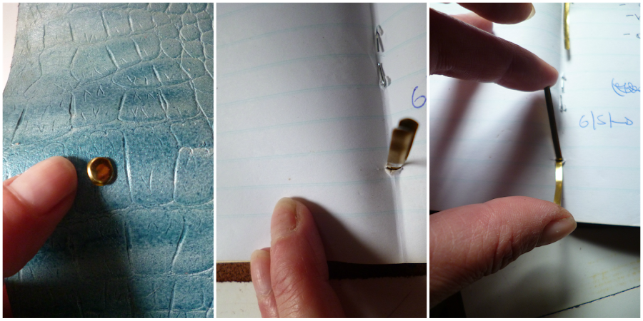 2-Realizarle al "lomo" del cuaderno y al cuero tres perforaciones,haciéndolas coincidir entre si.