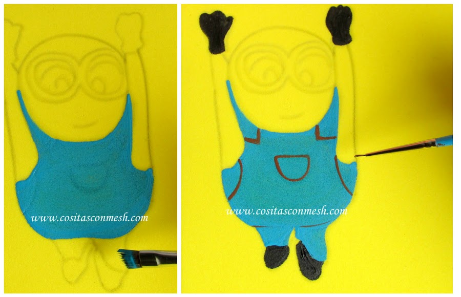 4.-Ahora pintamos toda nuestra figura de Minions.