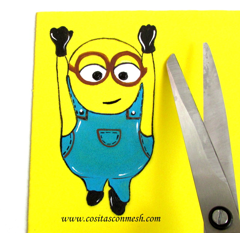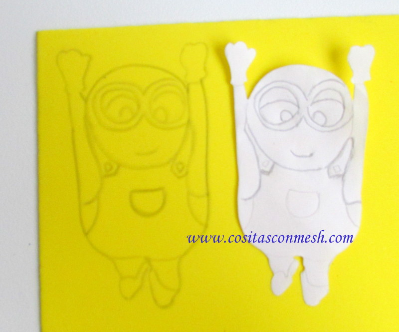 3.-Listo chicas ya pasamos el molde de Minions sobre la goma eva.