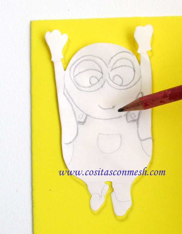 Con un lápiz marca todo el molde, así transferimos el molde de Minions en la goma eva ( foami-,microporoso)