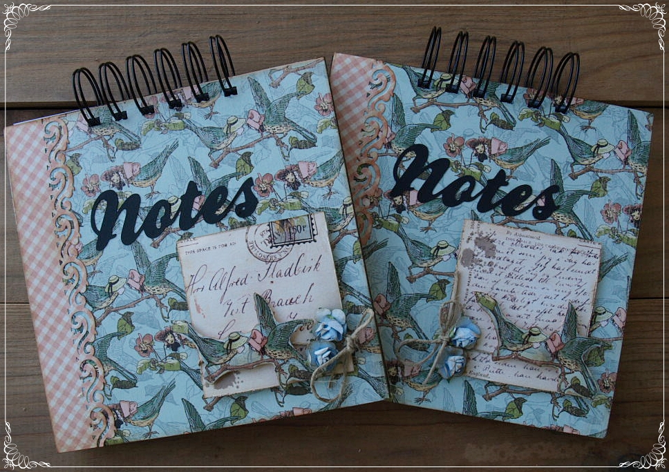 Un encargo que ha salido esta misma mañana ...5 cuadernos hechos con la colección "Once upon a springtime" de Graphic 45, he de decir que en cuanto vi esta colección de papeles me enamoré de ellos, y me decidí a comprar el kit entero...pero que cuando los tuve en mis manos, a pesar de lo bonitos que son ,me parecieron dificilísimos para trabajarlos con fotos, por los fondos tan llenos de dibujo, los colores...no es que me decepcionaran, pero que no había manera de inspirarme con ellos; al final he ido utilizándolos en trabajos como libretas, porta-notas y otras cositas que os iré enseñando.
