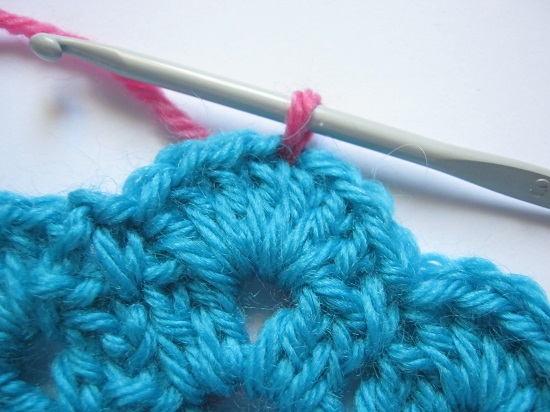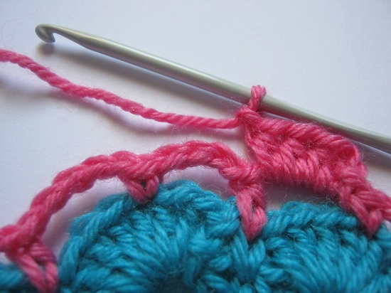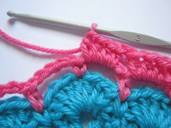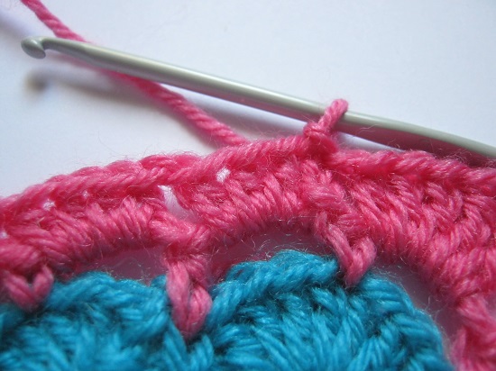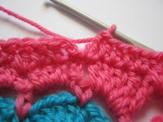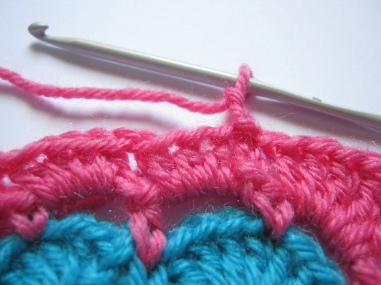 tejer 1 punto enano en la primera cadeneta de la vuelta