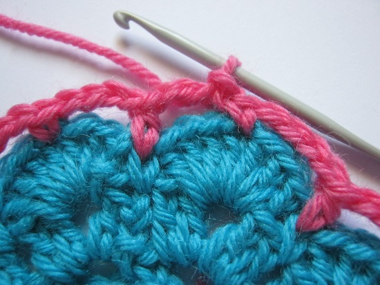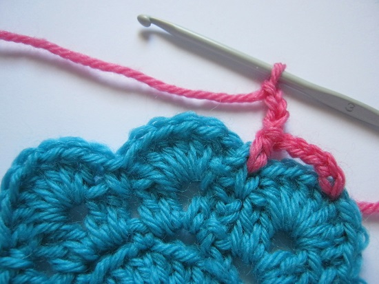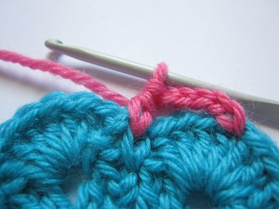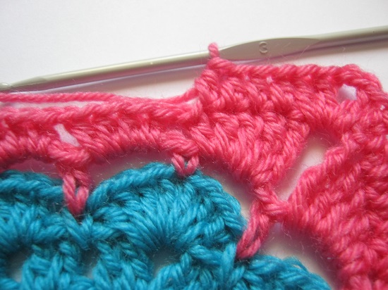 Después de realizar el último punto alto en el hueco de la cadeneta, unir al primer punto de la vuelta mediante un punto enano.