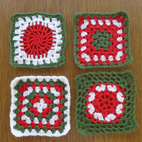 Hoy vengo a enseñaros los cuadrados que tengo preparados para enviar a Nic, de Warm Heart Crochet. Me encanta mirarlos, aunque algunos sean más bien navideños (los tengo preparados desde hace unos meses y no los había enviado), o estén hechos con los restos de la manta de rayas de Elena, o sólo sean intentos de hacer algo diferente...