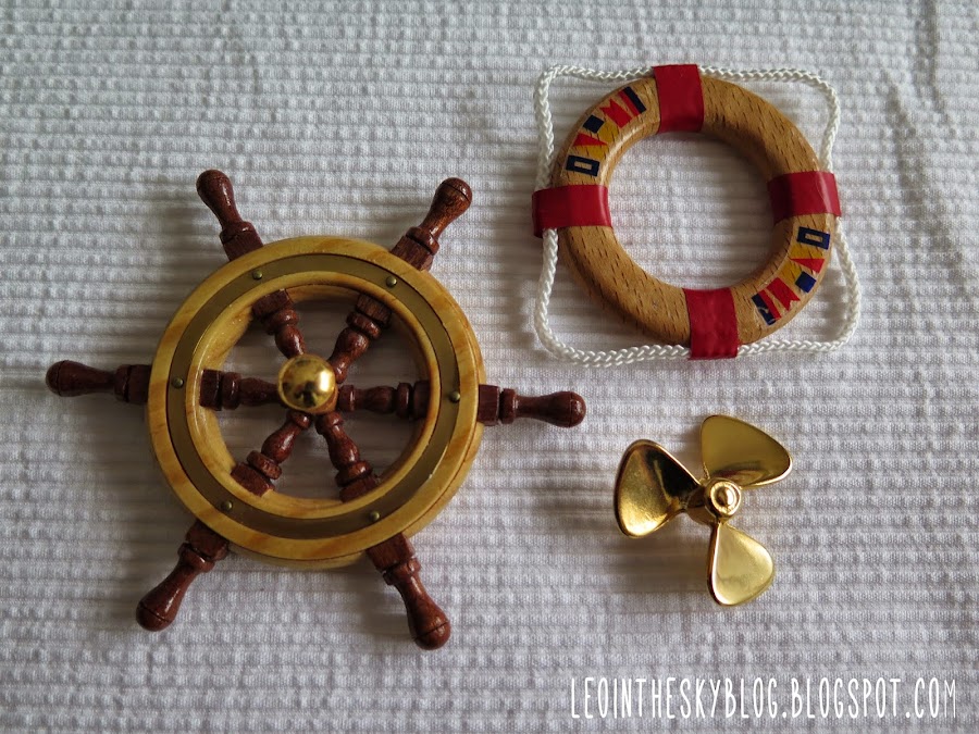 El timón y la hélice tenían un clavo, así que sólo tuve que clavarlas a la madera y en cuanto al salvavidas lo pegué con la pistola de pegamento.