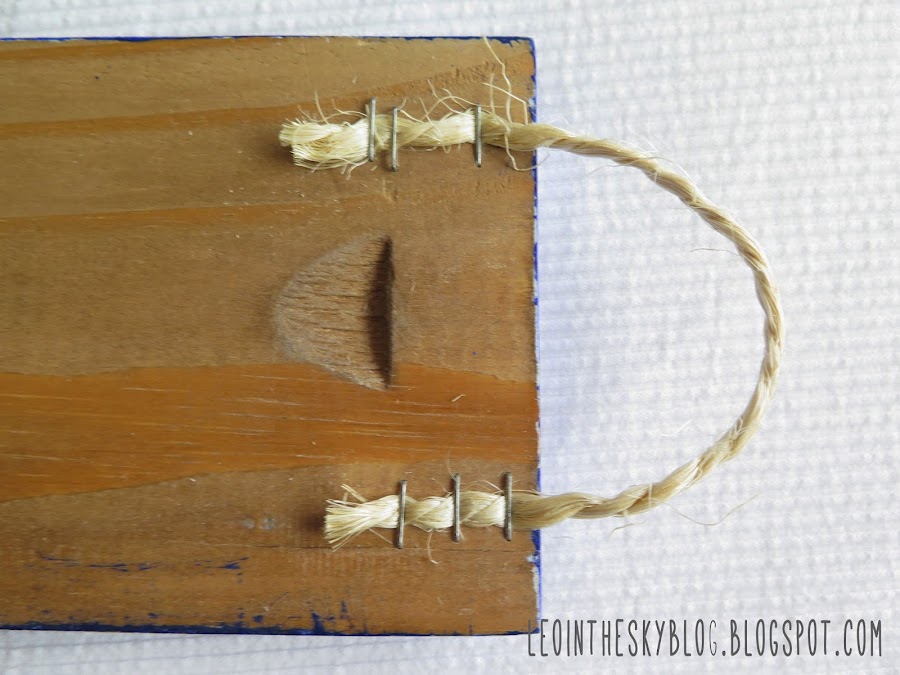 Para que se pudiera colgar le grapé por detrás un trozo de cuerda con la grapadora de tapizar, pero si no tenéis podéis clavarla, pegarla...