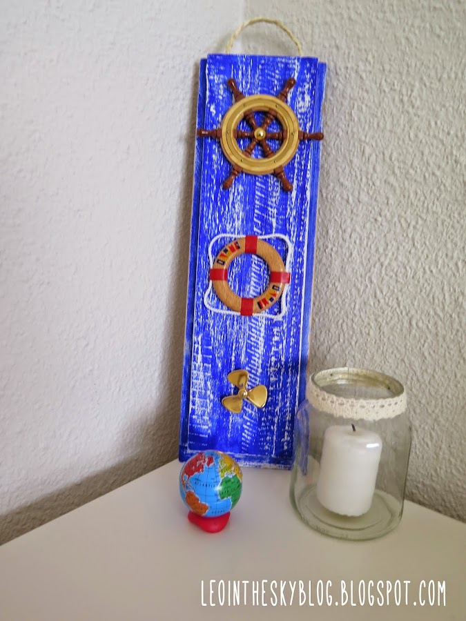 ¿Os acordáis de la caja de vino que transformé hace unas semanas para usarla como estante en la cocina? pues con la tapa de esa caja he hecho un cuadrito marinero, para regalárselo a mi padre aprovechando que la semana pasada celebramos su cumple.