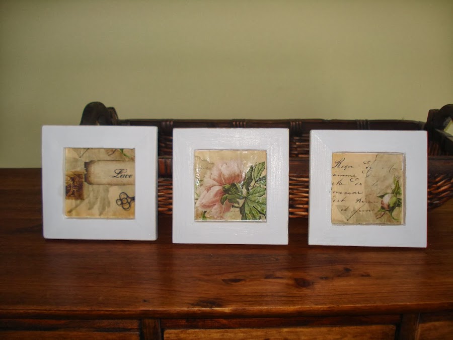 Les hice un decoupage con esta preciosa lámina, la recorté y ajusté a los cuadros.