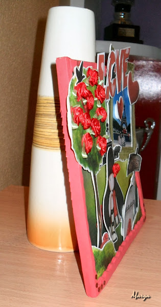 Os dejo la imagen también de perfil, para que veáis el efecto de las capas en relieve, que es una de las principales características de esta técnica del Scrapbooking.