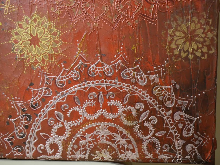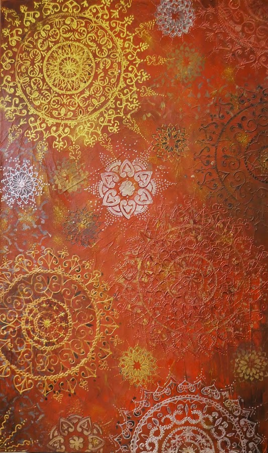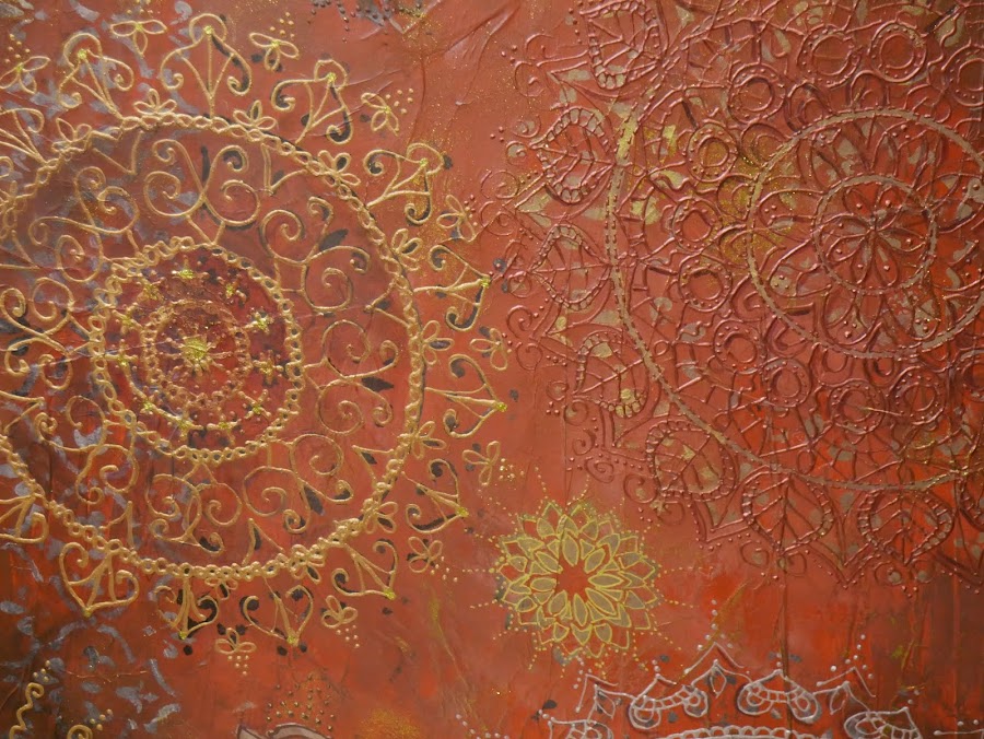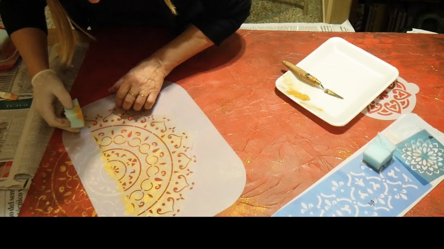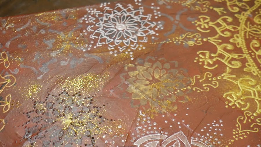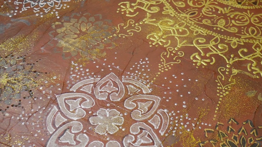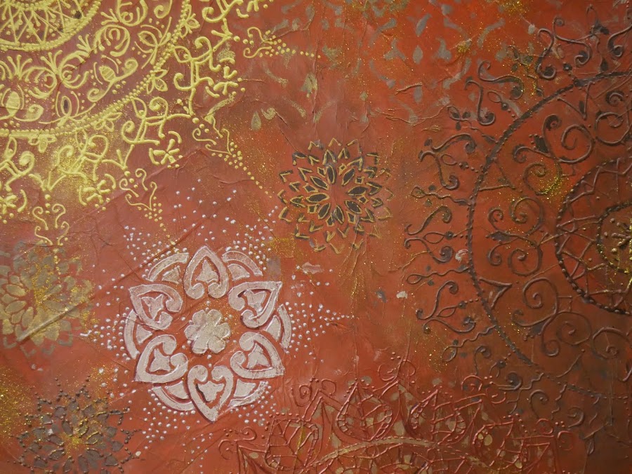 Me guié en un comienzo con stenciles o plantillas de mandalas y sobre ellos fui creando