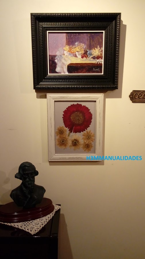 Y ahora sí, el marco tan significativo en su elaboración y las flores luce listo para ir a su destino definitivo. ¡Gracias por haberme leído hasta el final!