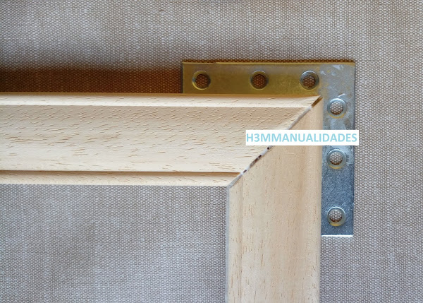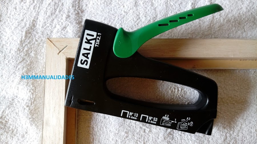 Para asegurar el armazón del marco pongo sendas grapas en las esquinas con la grapadora de "tapicero".