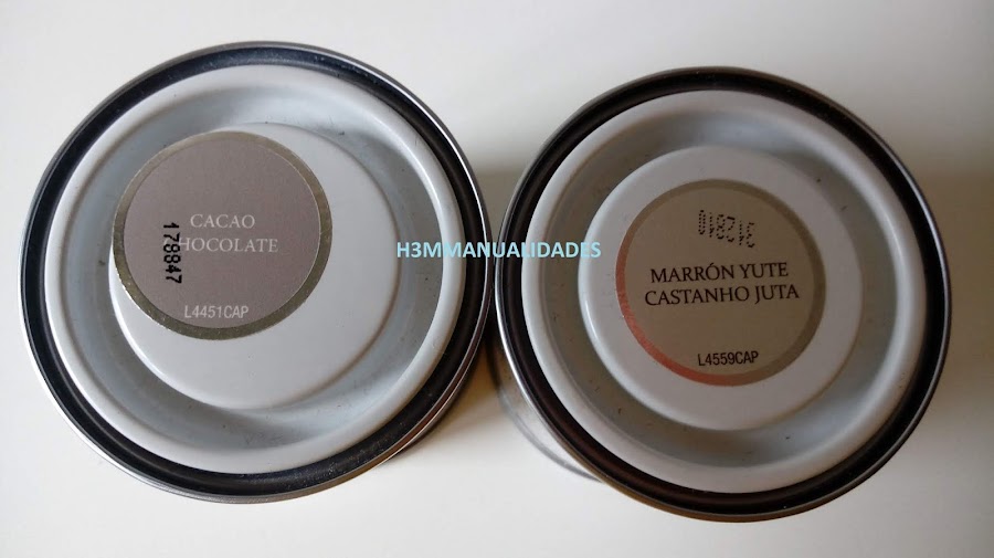 En los huecos que quedan relleno con pasta de madera y ya empezamos con la pintura: "cacao chocolate" en la capa de abajo y "castaño yute" la de arriba.