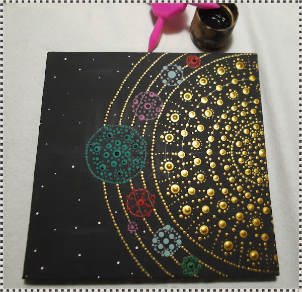 Esta es mi aportación para el reto que en esta ocasión me ha parecido un tema complicado y dificil pero al final he conseguido hacer mi propio Universo Espacial de colores y poder participar.
