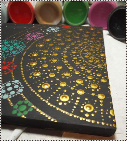 Preparo las pinturas y comienzo a dibujar los puntos.