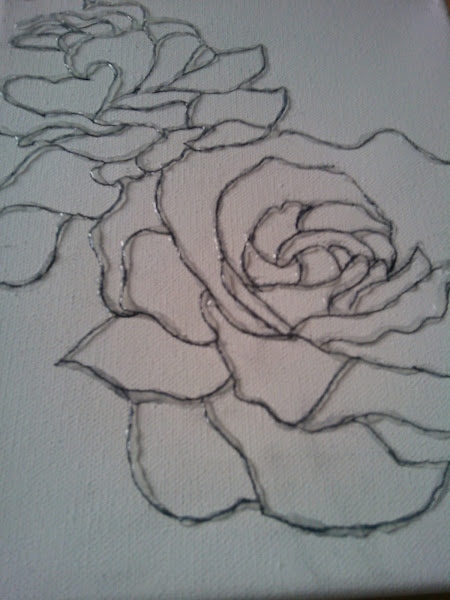 Sobre un lienzo blanco copiamos nuestro dibujo con ayuda de una papel de calco.