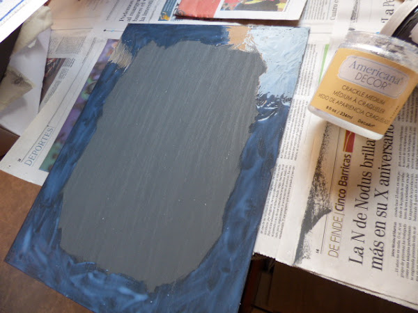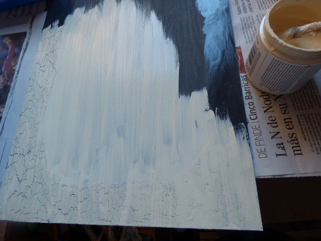 Una vez pasada la vela puse craquelador todo alrededor haciendo como un marco