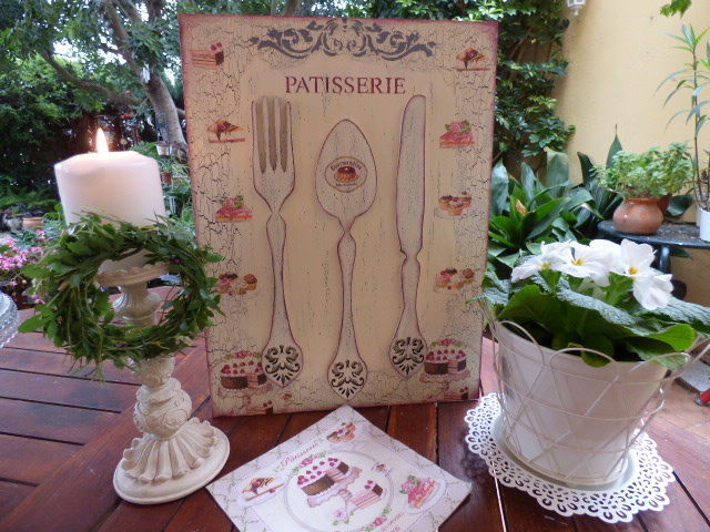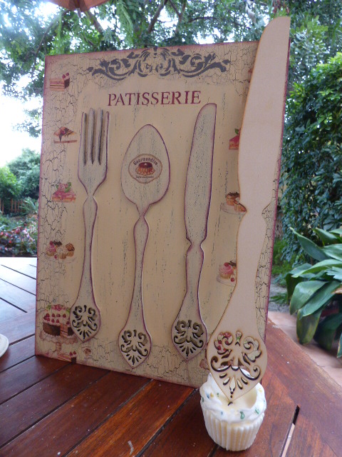 He utilizado una tablilla de 40 cm de alto x 30 cm de ancho. No es la tablilla de la foto que venía demasiado justa para lo que quería hacer. Y los cubiertos de 30cm