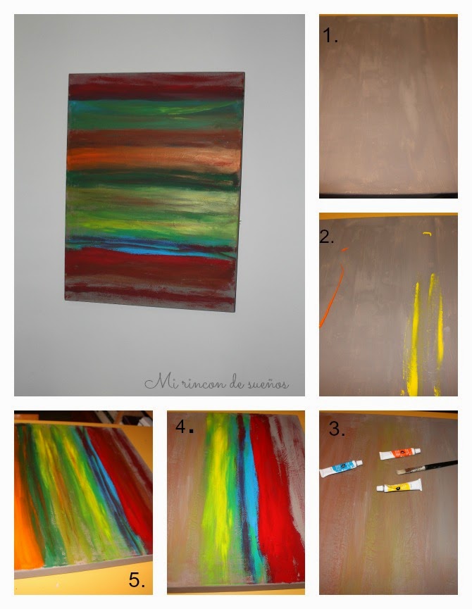 Solo hace falta colores acrílicos, que iréis poniendo encima del lienzo, con ayuda de un pincel extenderlo a vuestro gusto.