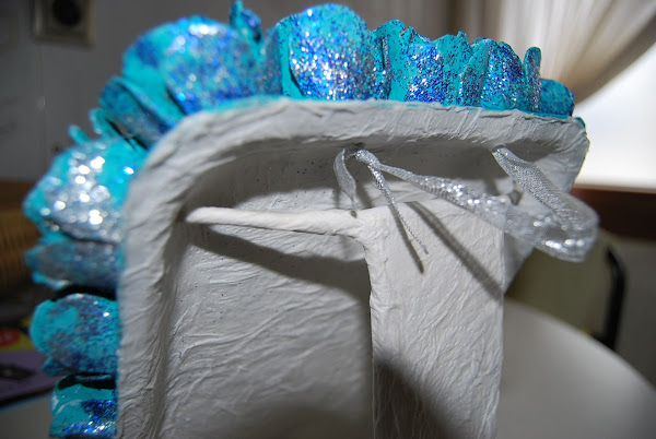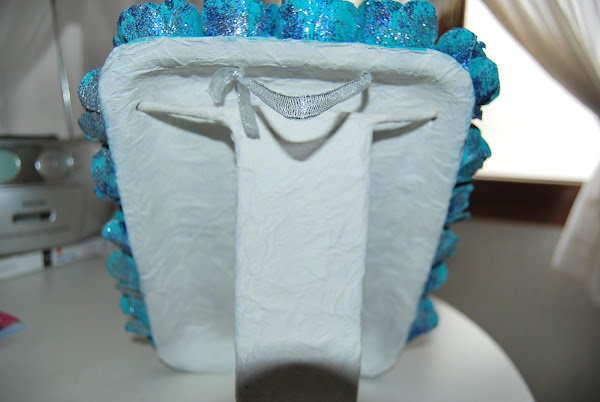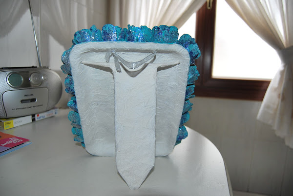 Después, para integrar y darle mas resistencia al pie, se le dan unas capas de cola y papel de cocina. Esta especie de cartón piedra queda muy duro, y soporta el peso del cuadro sin deformarse. En la parte interna de la bandeja también se ha dado el mismo tratamiento.