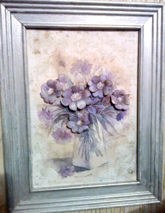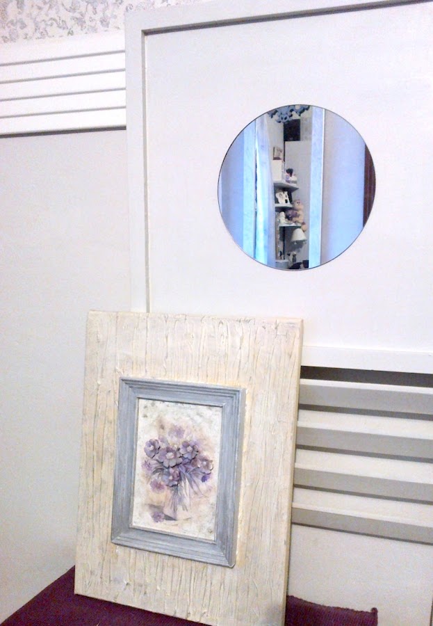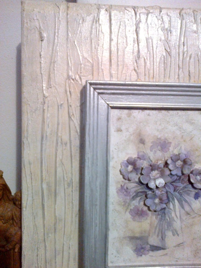 Y este es el resultado final, después de pintar el fondo en un color crema suave y matizar a pincel seco con plata, el marco se ha pintado igualmente en plata.