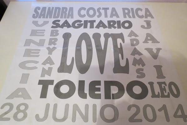 Bien comenzaremos tomando las medidas de nuestro lienzo y en un programa tipo Word o Photoshop intentar hacer nuestra combinación con las medidas del lienzo y jugando con las tipografías y tamaños de letras iremos construyendo la composición que más nos guste. Más o menos como podéis ver en la foto inferior.