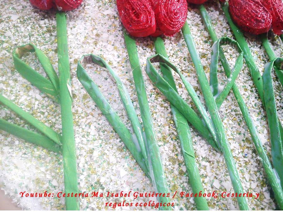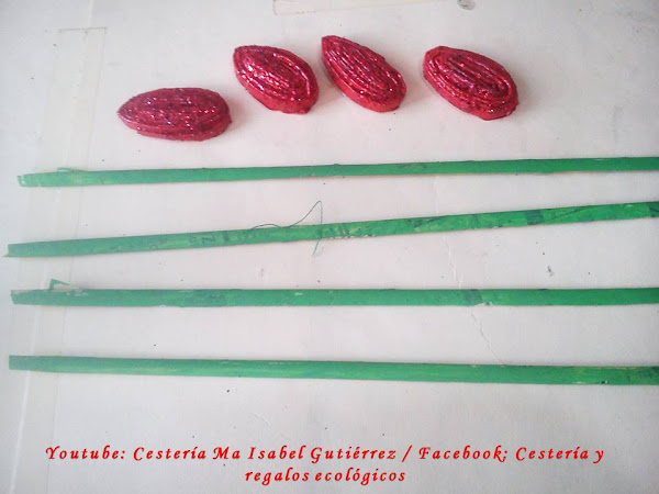 Para simular hojas, cortamos tramos pequeños de varillas verdes, pegamos en forma de aro largo como se ve en la imagen...