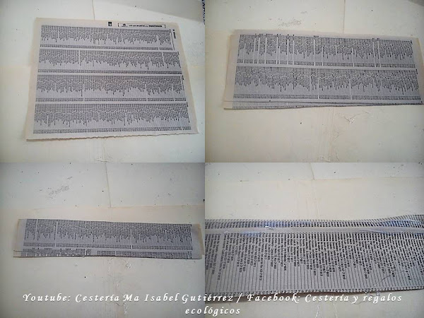 Aparte, hacemos las varillas de papel; de preferencia con papel delgado del tipo de las hojas de directorio telefónico para que salgan delgadas, pero también puedes usar el papel de diarios, revistas o folletos. Cortamos tiras de papel de máximo 6 cms., de ancho... y si usas las hojas de directorio telefónico, se corta una hoja en cuatro tiras del mismo tamaño...