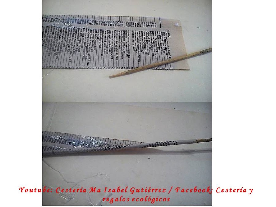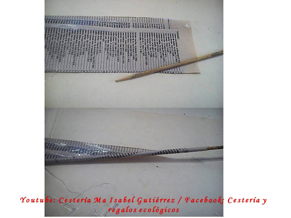 Hacemos aproximadamente 40 varillas cortas hechas con las hojas de directorio telefónico, o la mitad si las haces largas de papel de diario. Las aplanamos con nuestros dedos...