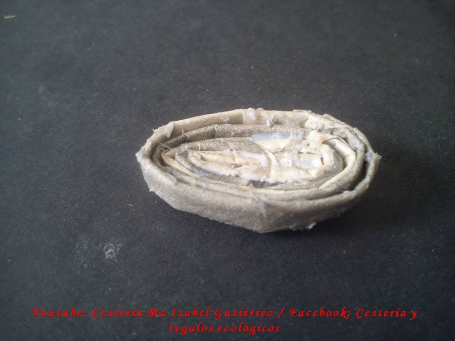 Al terminar de enrollar esta primera varilla de papel, aplanamos un poco un extremo de manera que quede un poco en pico... el enrollado del centro lo subimos un poco para ahuecar...