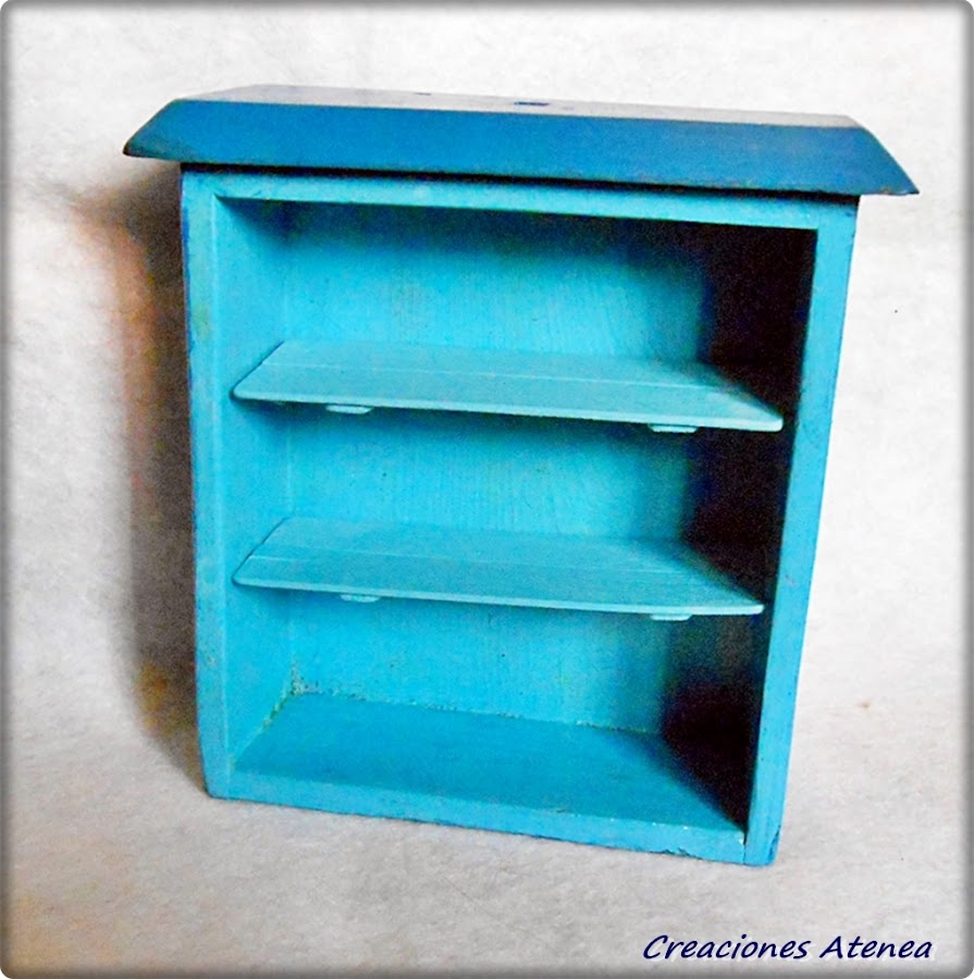 Aquí ya he puesto los estantes. Se me olvidó decir que quité el pomito que tenía el cajoncito (perdón por tanto diminutivo, pero es que es muy pequeño).