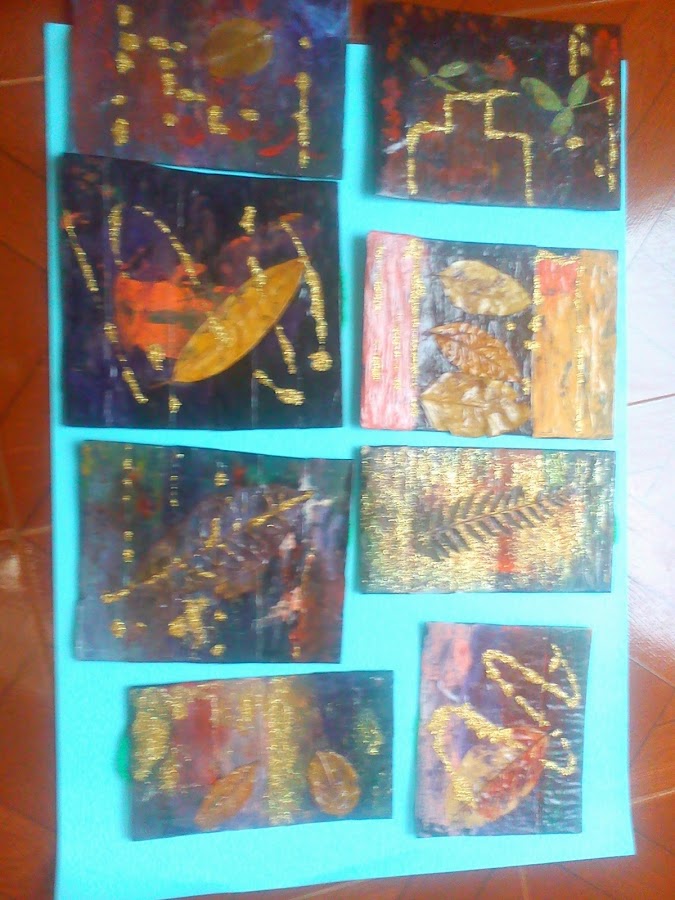 Mientras se seca la base, los niños van escogiendo las hojas para decorar.