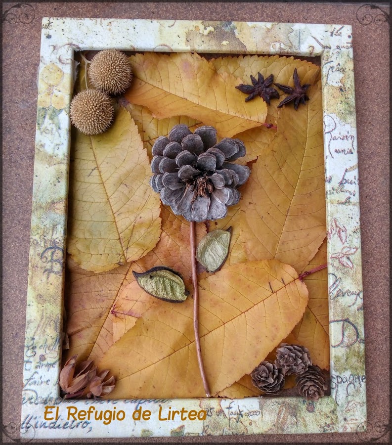 He creado este cuadro con temática otoñal, todo realizado con elementos naturales.