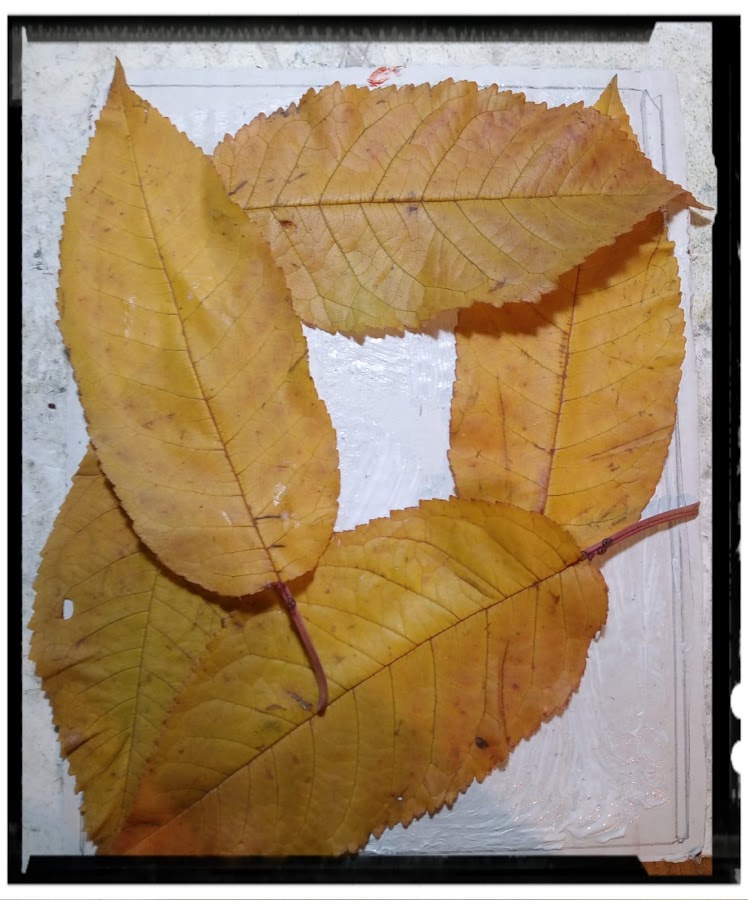 Lo primero fue secar muy bien las hojas e ir pegándolas sobre una base de cartón previamente trabajado con Gesso para hacerla más resistente, sería el fondo de mi cuadro.