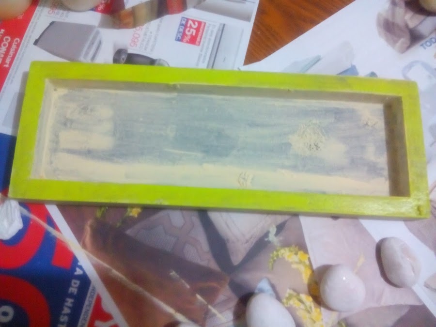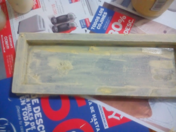 Varias capas de crema acrílico pero en aguada para que quede como estilo viejo/country