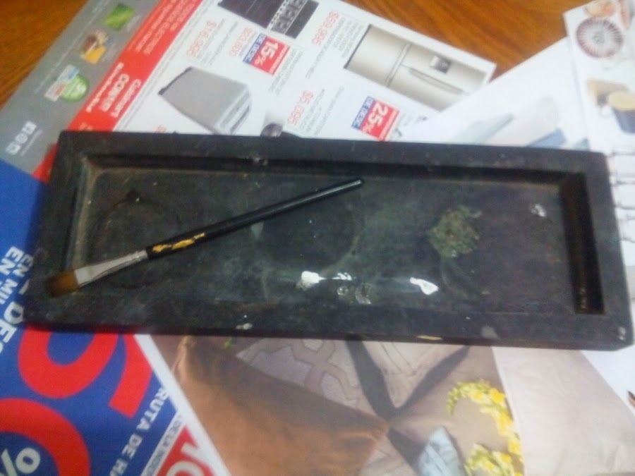 Lo primero que hice además de limpiarlo para liberarlo de todo polvo y poder trabajar bien en el fue tapar el color negro con crema acrílico.