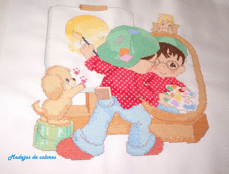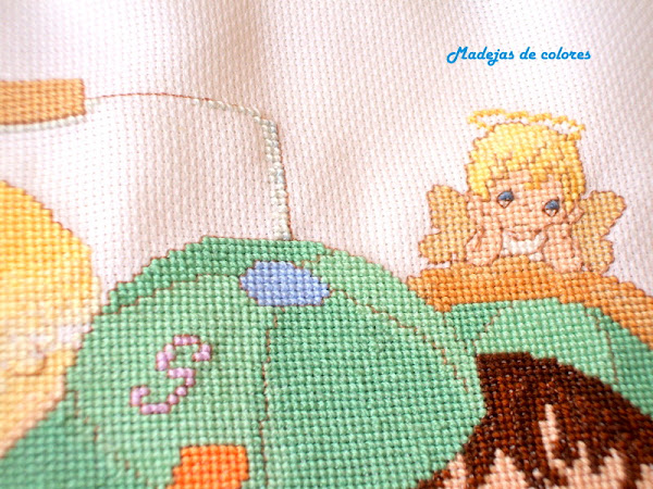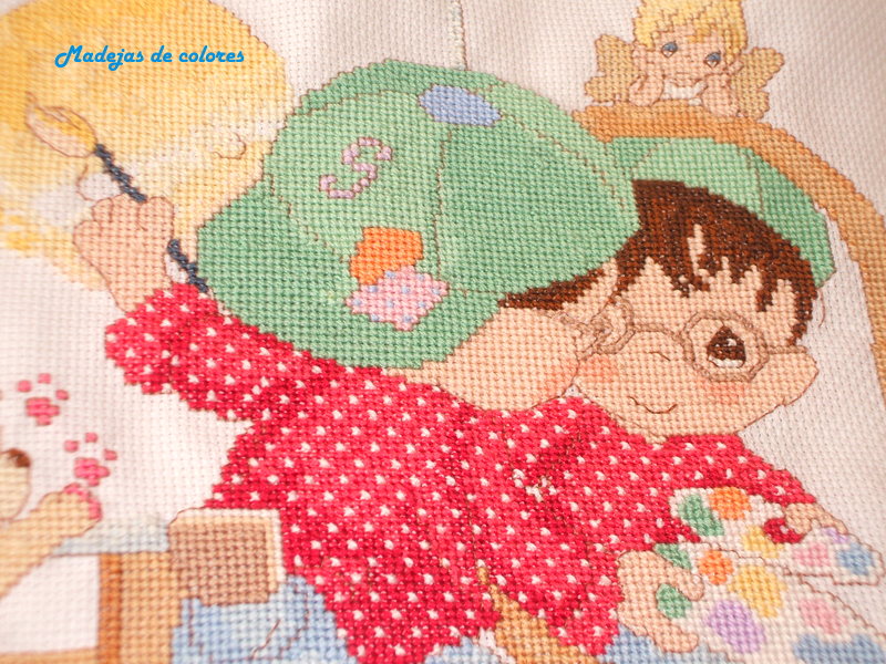 En esta ocasión se trata de un cuadro de punto cruz para un niño, pero no es el típico con el nombre que hago siempre, pero si de "Precious Moments" y de mayor tamaño.