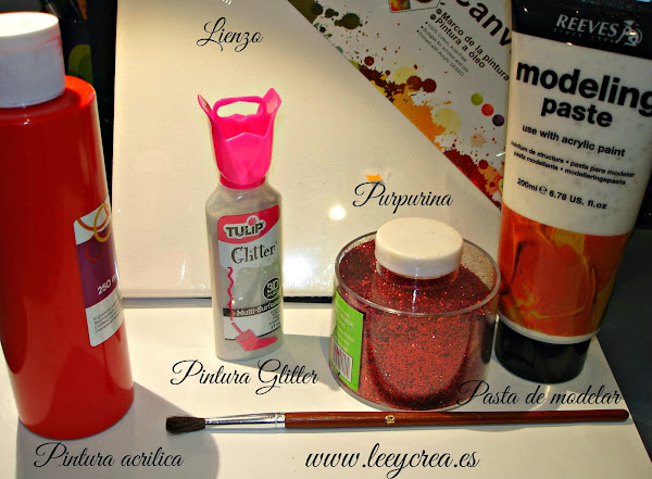 Lo primero que haremos será pintar el lienzo de rojo, lo empaparemos bien de pintura para a continuación verter la purpurina roja sobre el lienzo y dejamos secar. Lo siguiente que hacemos es coger una plantilla de un árbol de navidad, recortando el interior de la plantilla. Colocamos la plantilla sobre el lienzo y rellenamos el centro de la plantilla con la pasta de modelar. Retiramos la plantilla y nos quedará la forma de un árbol de navidad. En los siguientes días una vez secada la pasta, pintaremos unas bolas con la pintura glitter y listo!
