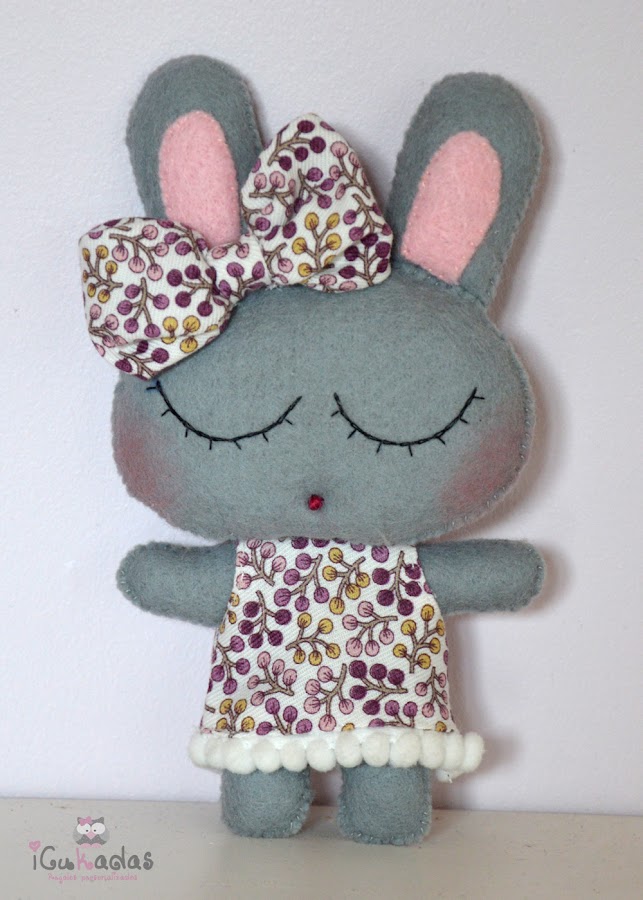 Para este encargo me pedían también la conejita a juego, que se puede hacer como muñeca o con una cinta para colgar en el carrito y que me tiene loca de amor.