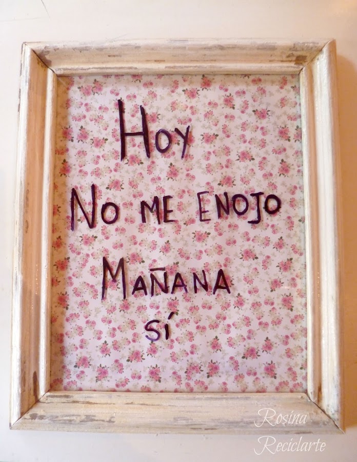 Con marcador indeleble escribí una frase que me encanta,y que ya la había usado en este perchero.