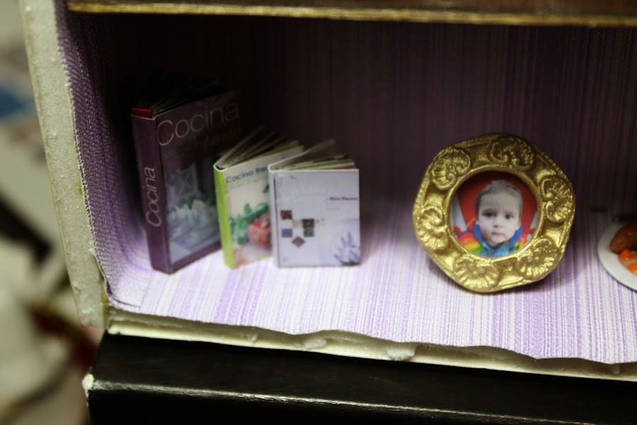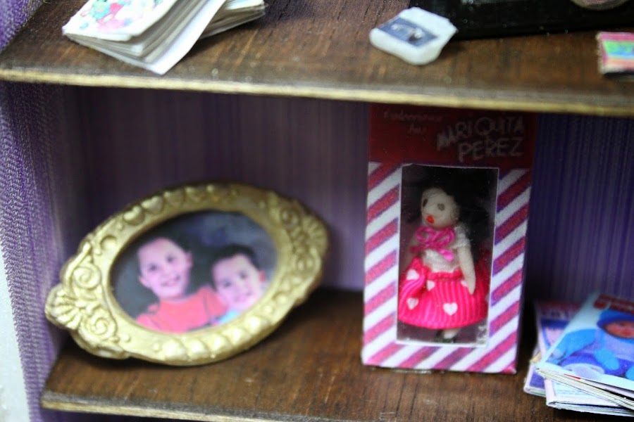 En la tercera balda coloque cosas que guardan relación con la infancia de sus hijos, esa foto de los dos juntos, una mariquita perez que le regalaron y las