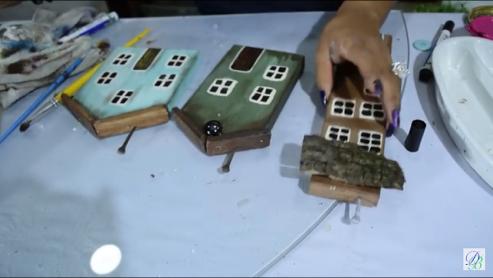 con el color blanco haremos las ventanas y la puerta, la cantidad de ventanas, será a gusto y según el tamaño de la tabla