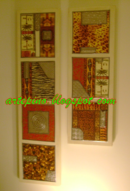 Aquí os dejo un ejemplo de lo que podéis hacer con unas laminas, postales o algún papel que os guste, pegados sobre una tabla de DM tendréis un bonito y barato cuadro.Más fotos en PINTADO arte pino