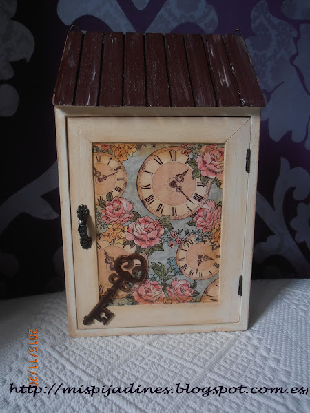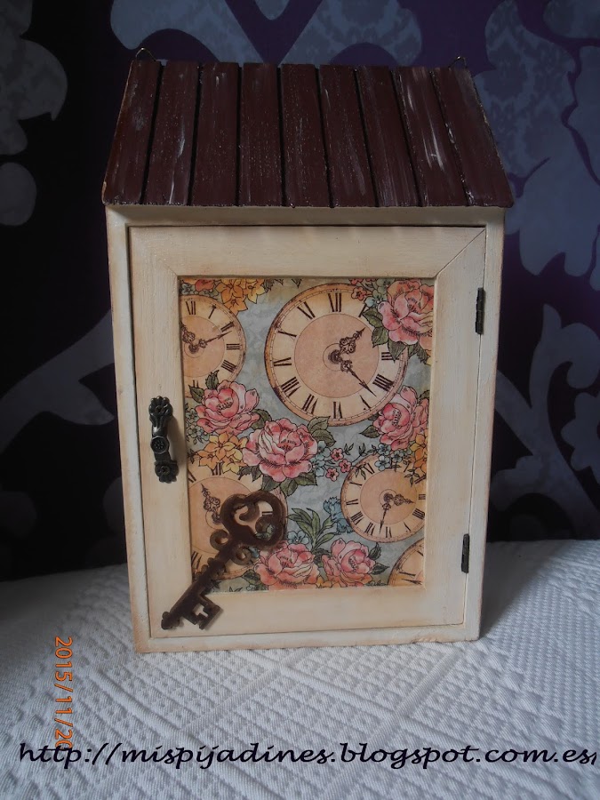 Armario cuelga llaves con pintura y papeles de scrap..