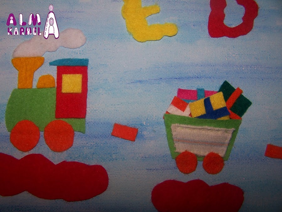 Realizado sobre lienzo, con el cielo pintado a acuarela y los detalles hechos en fieltro y tela.