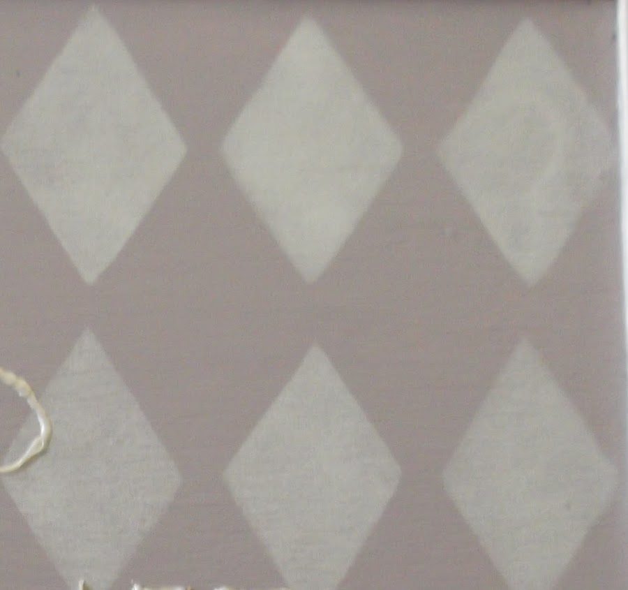 Para este me fabriqué una plantilla de rombos. Primero,pinté con imprimación y luego pintura acrílica organza. Deje secar y barnice para luego hacer el estencil.